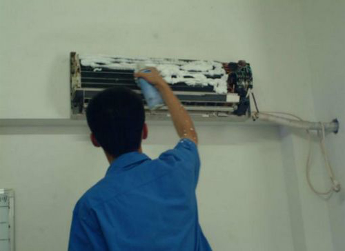 | 四平市空调维修师傅给四平市用户上门维修清洗空调。 |